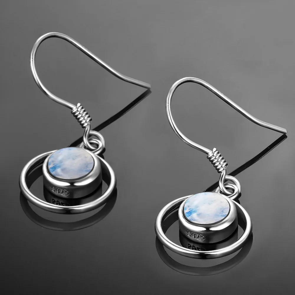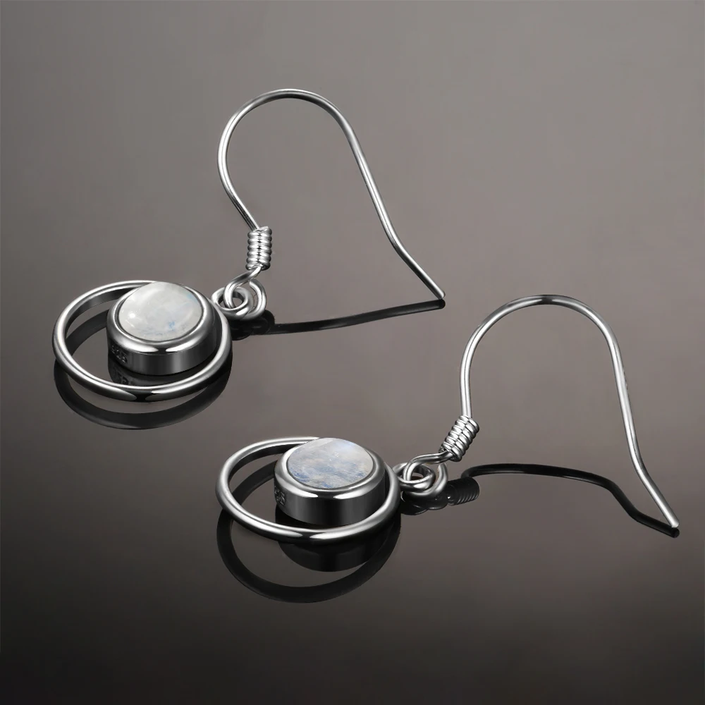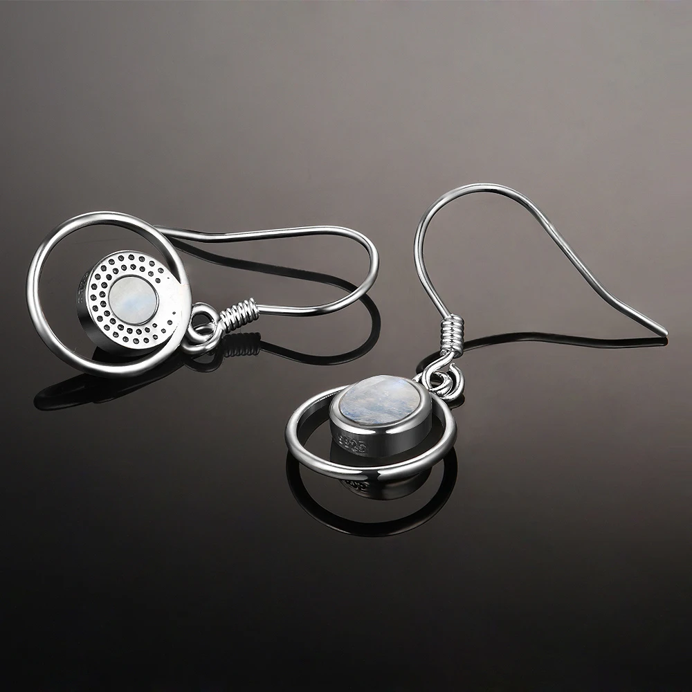 أقراط من الفضة الإسترلينية عيار 925 أنيقة دائرية الشكل من حجر القمر الطبيعي مقاس 5 مم أقراط متدلية للنساء لحفلات الزفاف والخطوبة